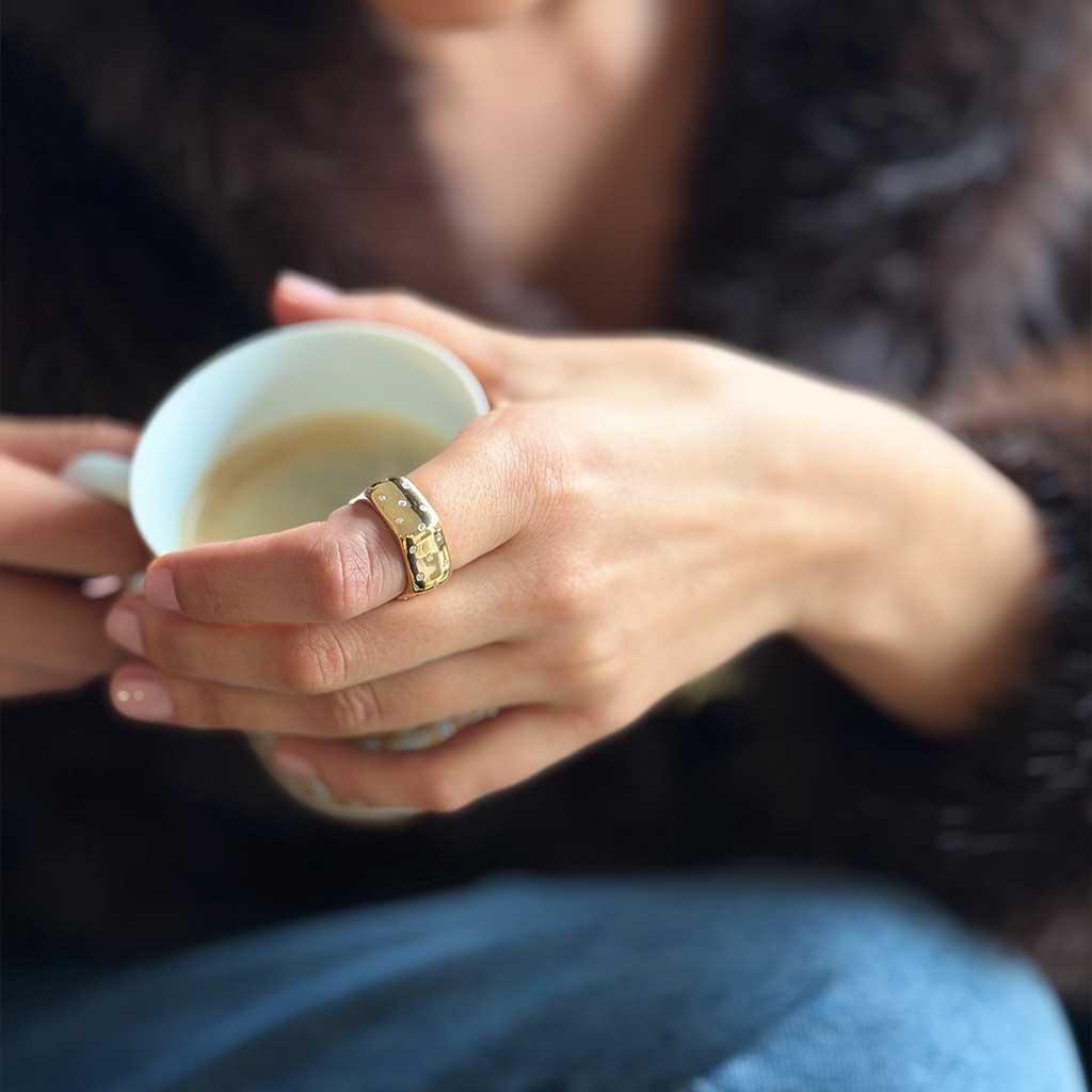 Designed for everyday wear or as a distinctive statement piece, this ring can be worn on its own or paired with other Arcadia designs.